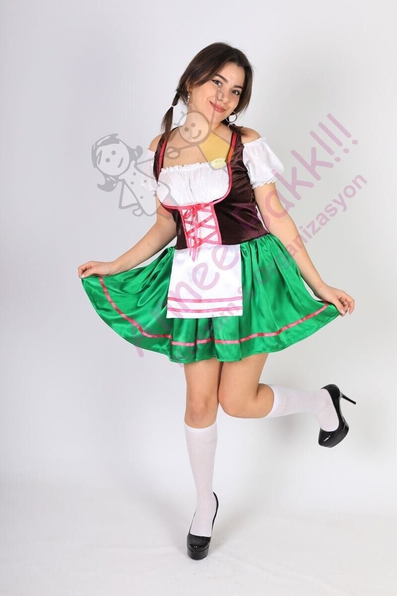 Özel kültür ve ülke kostümleri üretmeyen bir işletme olarak, kaliteli kadife ve saten kumaştan ürettiğimiz 'Yeşil Renk Mini Alman Kadın Kıyafeti' ile Almanya'nın geleneksel zarafetini ve şıklığını üzerinizde taşıyın. Bu özel kostüm, S, M, L ve XL beden seçenekleriyle her bedene uyum sağlar.