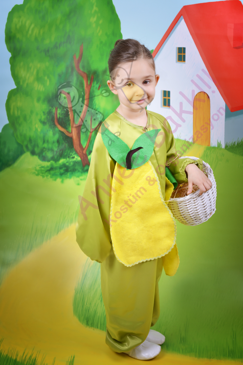 Kaliteli Saten ve Keçe Kumaştan Üretilmiş Çocuk Armut Kostümü