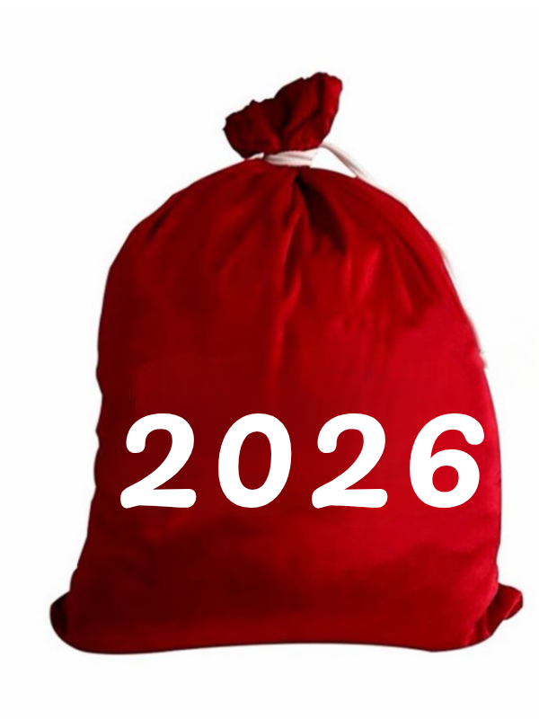 - Yeni yıl Çuvalı kadife kumaş malzemeden üzerine keçe ile 2026 yazısı dikilmiştir.