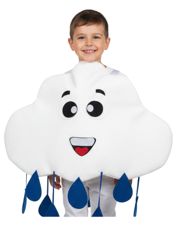 Bulut kostüm aksesuarı, keçeden hazırlanmış hafif ve formunu koruyan yapıya sahiptir. 5-10 yaş çocuk kullanımına uygun standart ölçüdedir. Çocuk bulut kostümü ile birlikte tamamlayıcı bir görünüm sunar. Okul etkinlikleri ve sahne gösterileri için pratik bir kostüm aksesuarıdır.