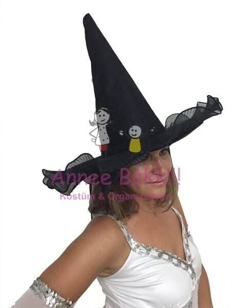 Siyah Fırfırlı Cadı Şapkası