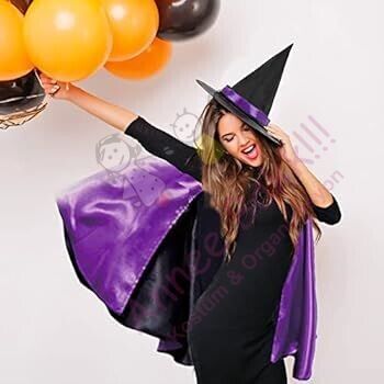 Çift Taraflı Cadı Pelerini ve Şapka Set, Cadılar Bayramı Yetişkin Pelerin Şapka Set