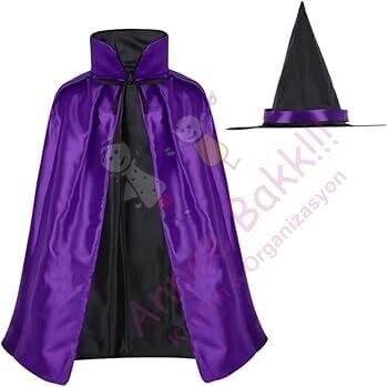 Yetişkinler İçin Çift Taraflı Cadı Pelerini ve Şapka Seti: Cadılar Bayramı'nda Şıklığı ve Eğlenceyi Birleştirin!