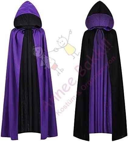 Çift Taraflı Kapüşonlu Mor - Siyah Pelerin, Cadılar Bayramı Pelerin