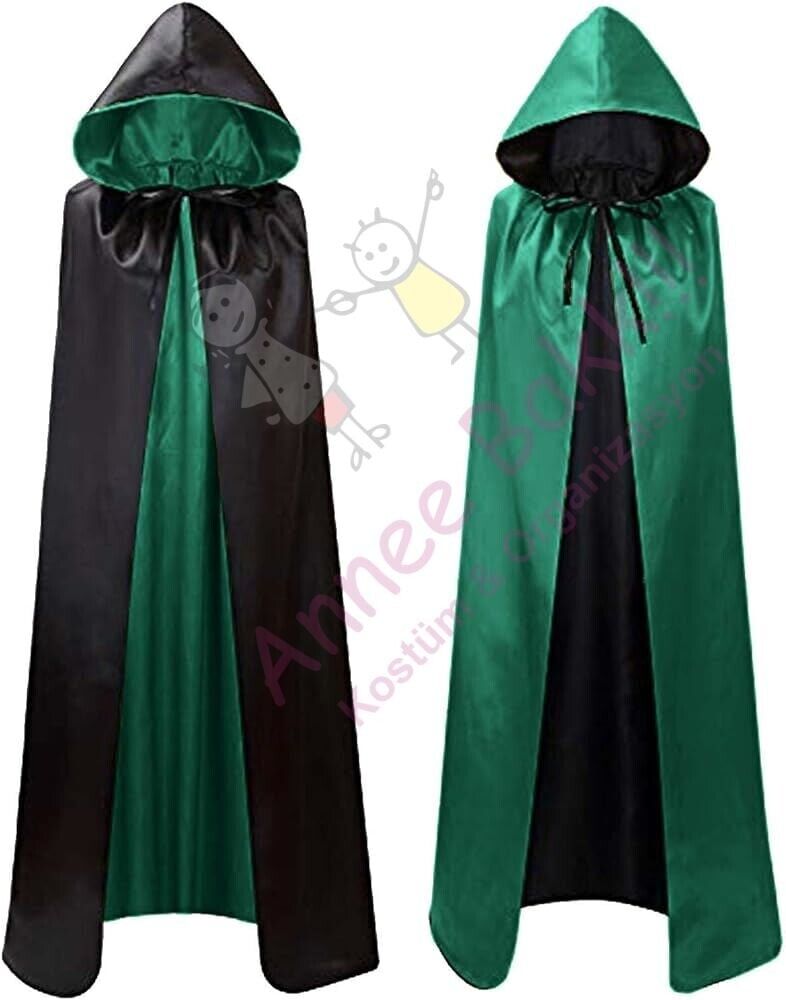 Çift Taraflı Kapüşonlu Pelerin, Yeşil - Siyah Cadılar Bayramı Pelerin