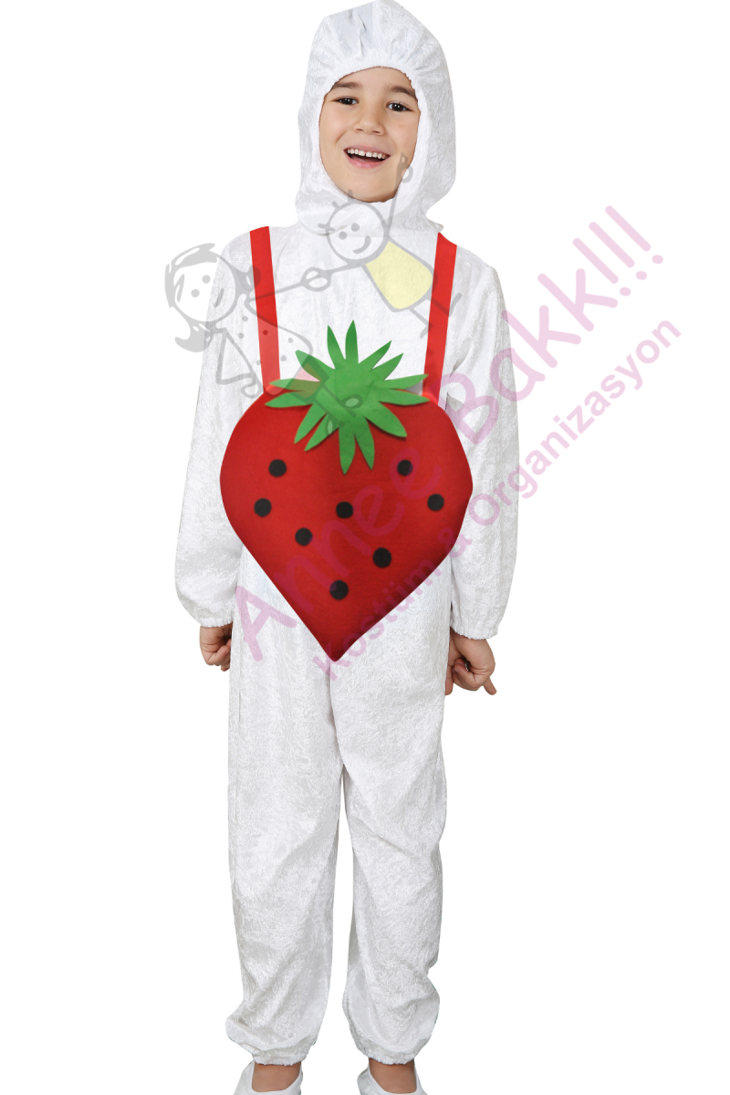 Kaliteli kadife ve keçe kumaşlardan üretilen ''Çocuk Çilek Kostümü'' ile çocuklarınızın sağlıklı yaşam tarzını renkli bir şekilde vurguluyoruz.