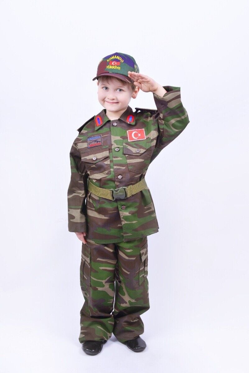 Çocukların meslekleri keşfetmelerini ve hayal güçlerini geliştirmelerini sağlayan özel bir ürünle tanışın: Poplin kumaştan özel olarak üretilen çocuk asker kostümü!