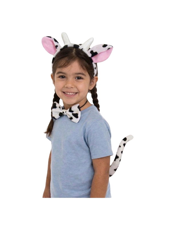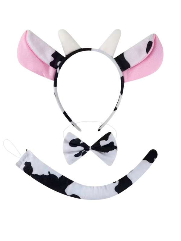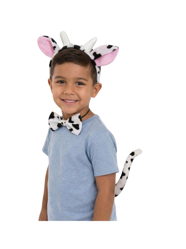 Set içerisinde inek tacı, papyon ve kuyruk aksesuarı bulunmaktadır. Birbirini tamamlayan bu üç parça, kostümün hızlı ve pratik şekilde hazırlanmasını sağlar. Hafif yapısı sayesinde çocukların rahat hareket etmesine olanak tanır ve kolayca takılıp çıkarılabilir.