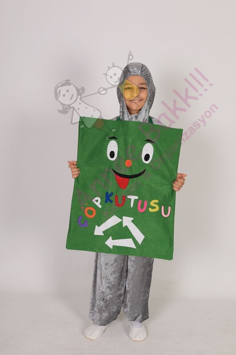Kostümümüz, kaliteli kumaşlar ve malzemeler kullanılarak üretilmiştir ve çocuklara geri dönüşüm bilincini aşılamayı amaçlar. Çöp kutusu temalı tasarımıyla, çocukları atık yönetimi ve çevre koruma konularında bilinçlendirir.