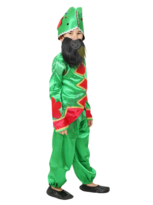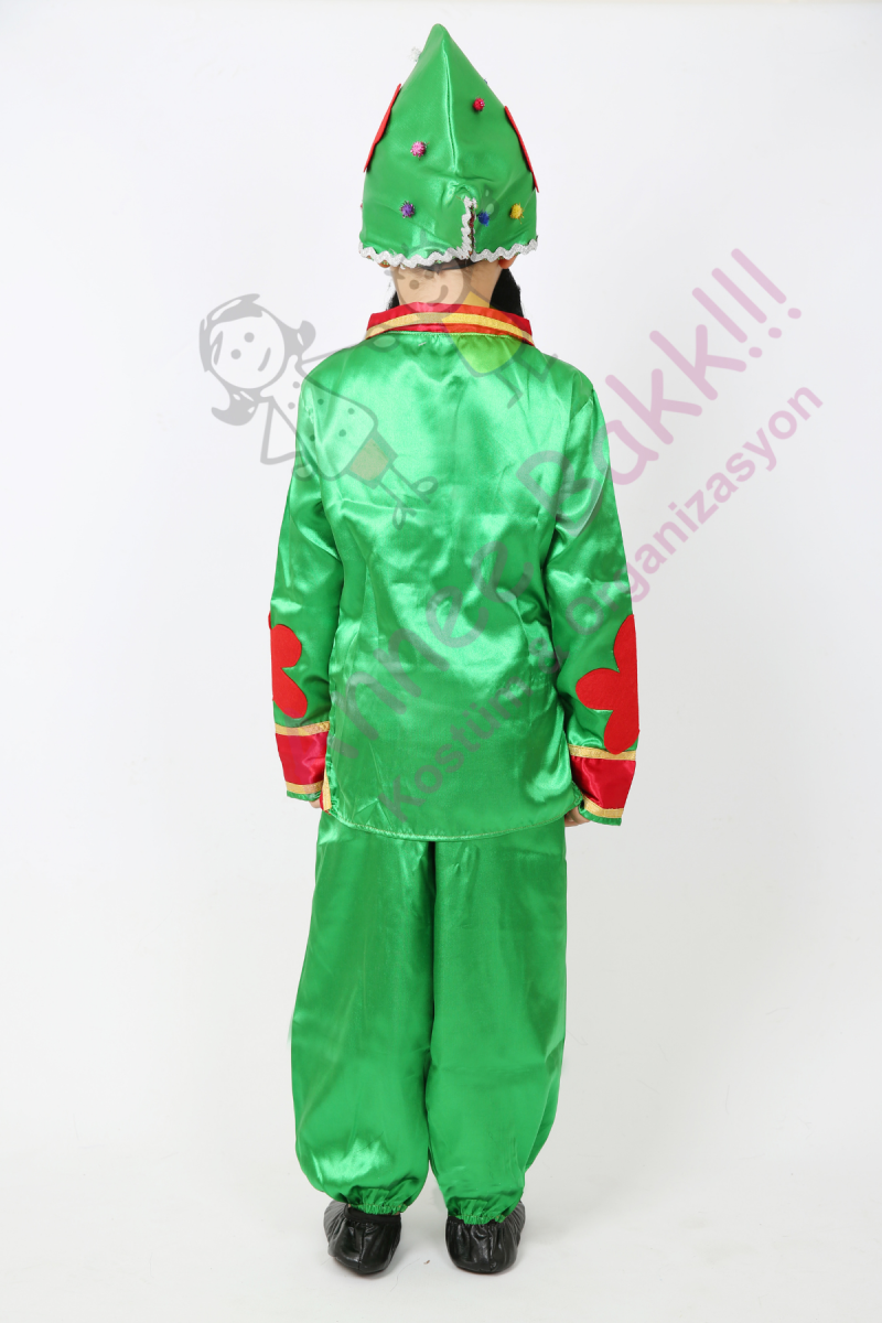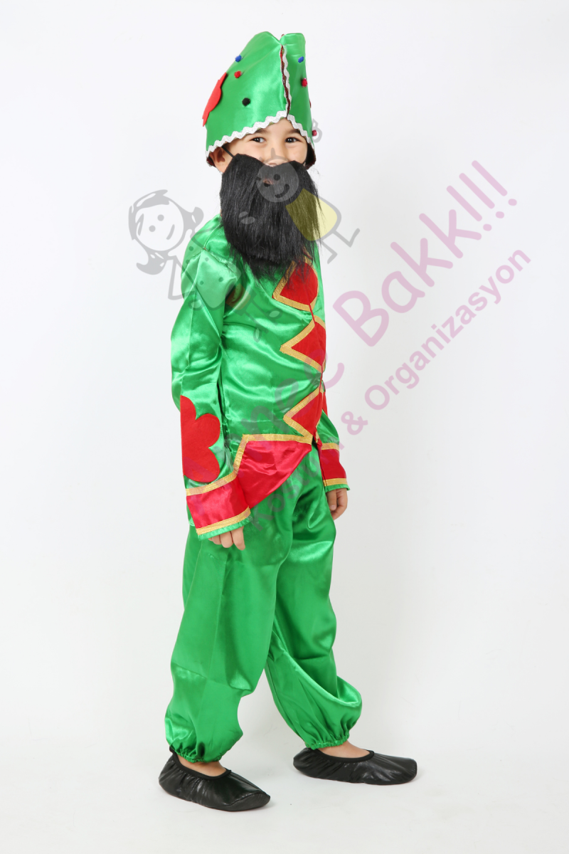 Kostümümüz, parlak ve göz alıcı yeşil ve kırmızı saten kumaştan özenle üretilmiştir. Pantolon, ceket, Hacivat şapkası ve Hacivat sakalından oluşmaktadır.