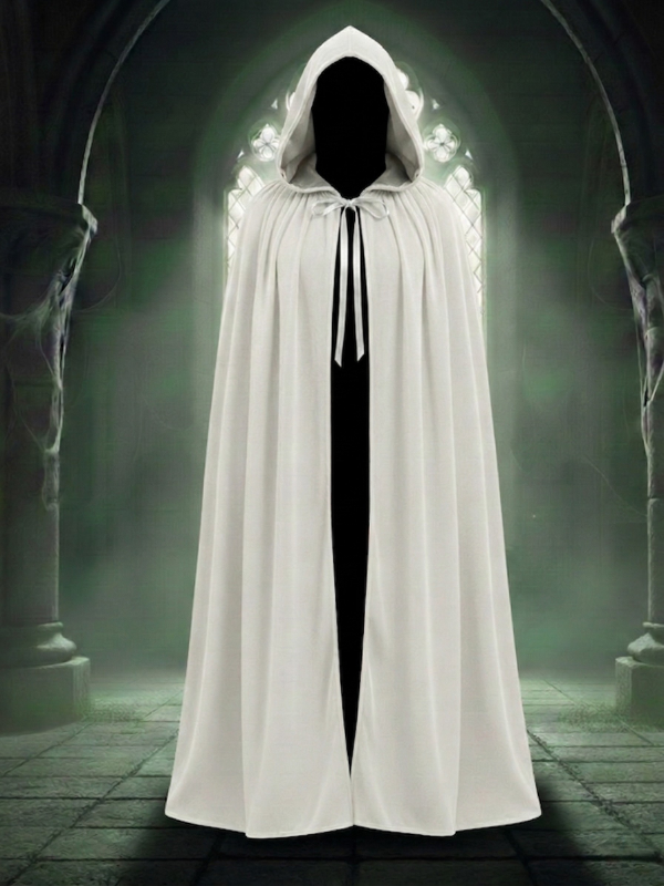 Kadife Beyaz Kapüşon Pelerin, Unisex Kapüşonlu Pelerin