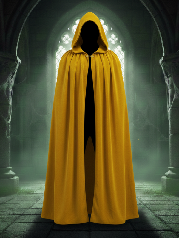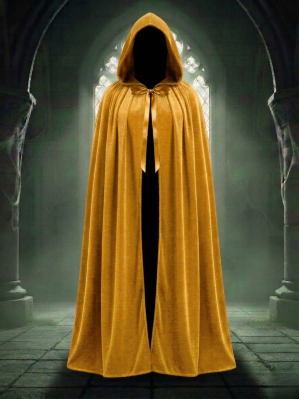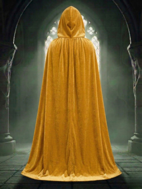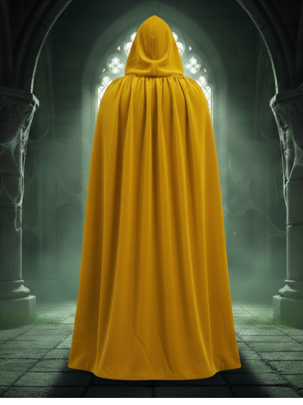 Kadife Sarı Kapüşon Pelerin, Unisex Kapüşonlu Pelerin