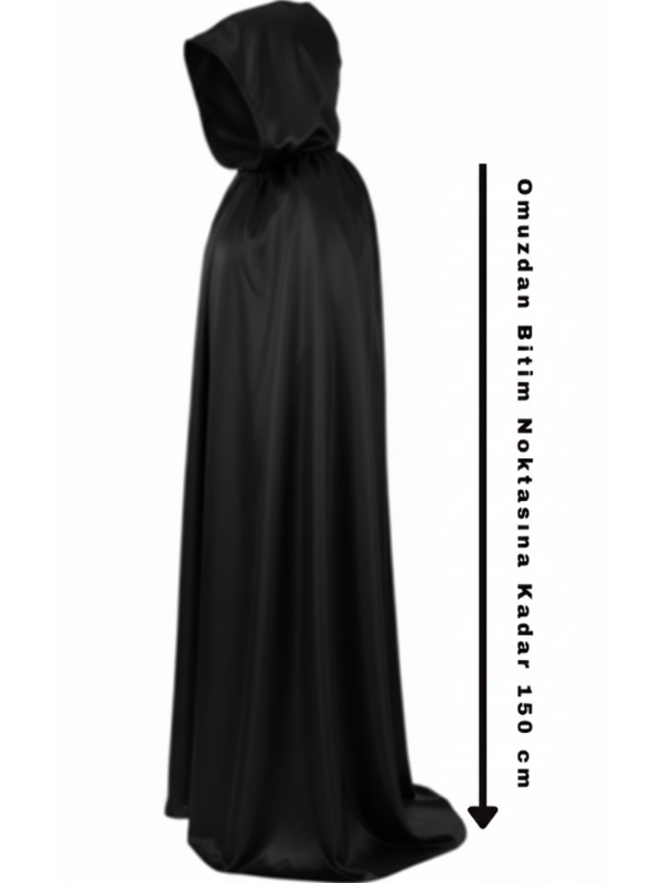 Cadılar Bayramı ve kostüm partilerinde kullanabileceğiniz bu siyah kapüşonlu pelerin, her türlü temalı etkinlikte kullanılabilir. Fiyat-performans açısından uygun olan bu ürün, sizi hem şık hem de etkileyici gösterecek. İster vampir olun, ister büyücü; bu pelerin her karaktere uyum sağlar ve kostümünüzü tamamlar.