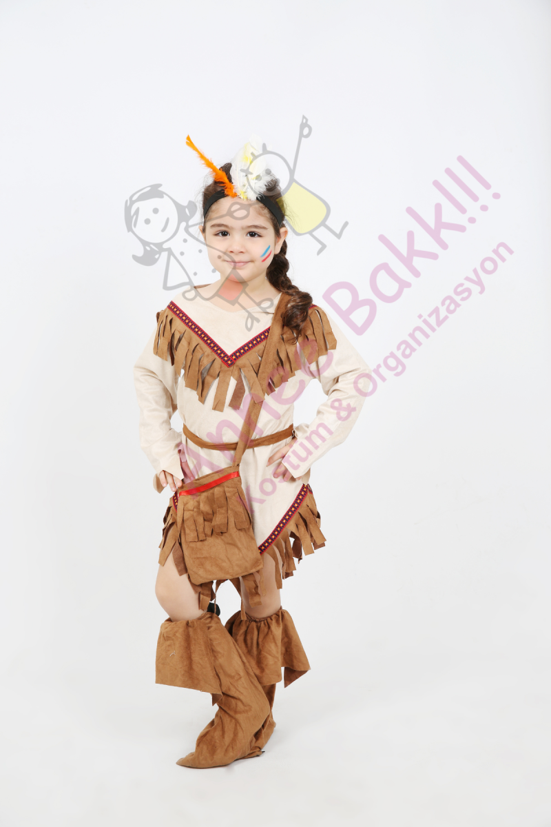 Kızılderili Kız Çocuk Kostümü, Kızılderili Temalı Çocuk Kıyafet