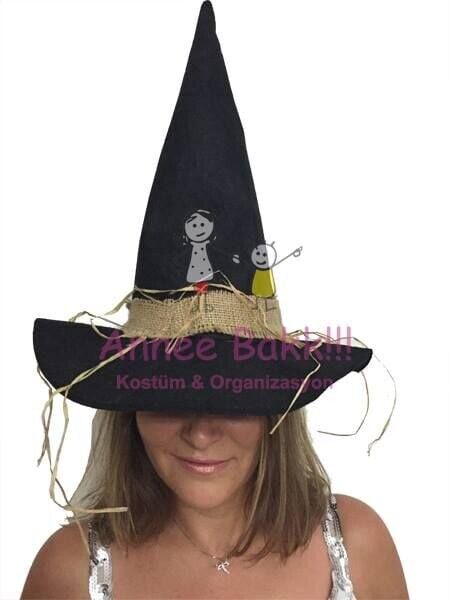 - Korkuluk cadı şapkası ürünümüz kaliteli keçe kumaştan üretilmiş olup üzerindeki desen montedir.