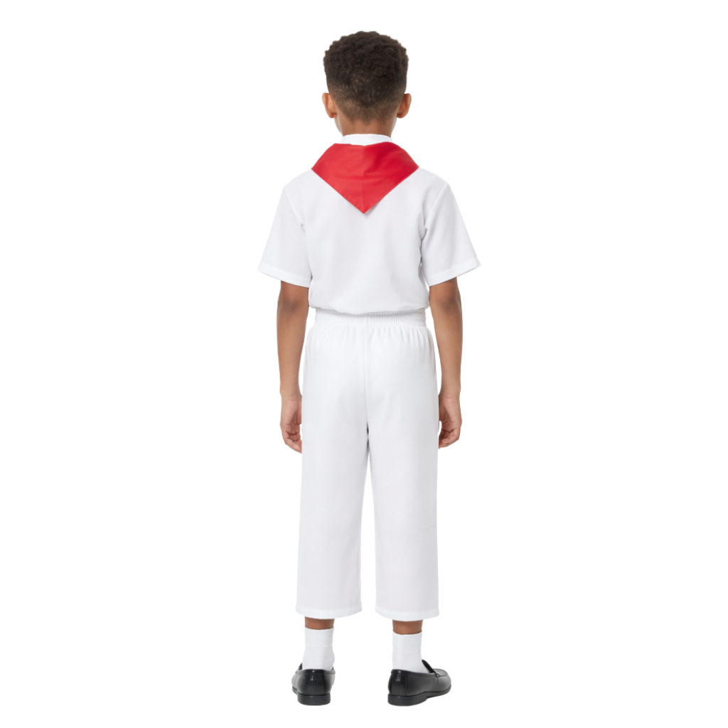 Ürünümüz poplin ve alpaka kumaş kullanılarak üretilmiştir. Poplin kumaş hafif, yumuşak ve nefes alabilir yapısıyla çocukların gün boyu konforlu kalmasını sağlar. Alpaka kumaş ise daha tok ve dayanıklı yapısı sayesinde pantolonun formunu korumasına yardımcı olur. Bu kumaş kombinasyonu sayesinde kostüm hem estetik bir duruş sergiler hem de sahne hareketleri sırasında rahatlık sunar. Çocukların hareket özgürlüğünü kısıtlamayan bir kalıp yapısına sahiptir.