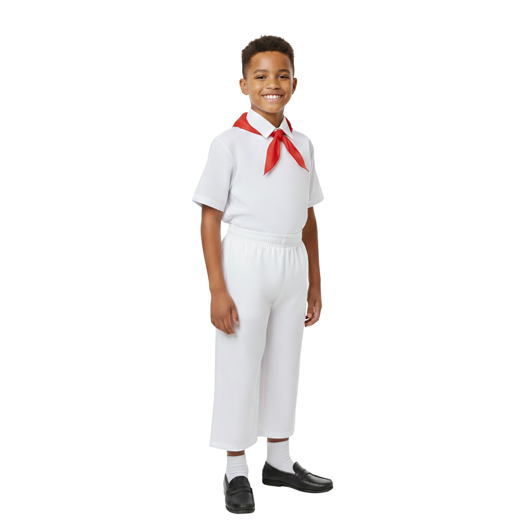 Küba erkek çocuk kostümümüz, kendi üretim atölyemizde özenle hazırlanmakta olup tamamen yerli üretimdir. Üretim sürecinin her aşamasında kalite kontrol sağlanarak çocukların güvenle kullanabileceği bir ürün ortaya çıkarılır. Dayanıklı dikiş yapısı ve formunu koruyan tasarımı sayesinde hem sahne performanslarında hem de uzun süreli etkinliklerde rahatlıkla kullanılabilir. Yerli üretim olması sayesinde hem kalite hem de sürdürülebilir üretim anlayışı bir araya gelmektedir.