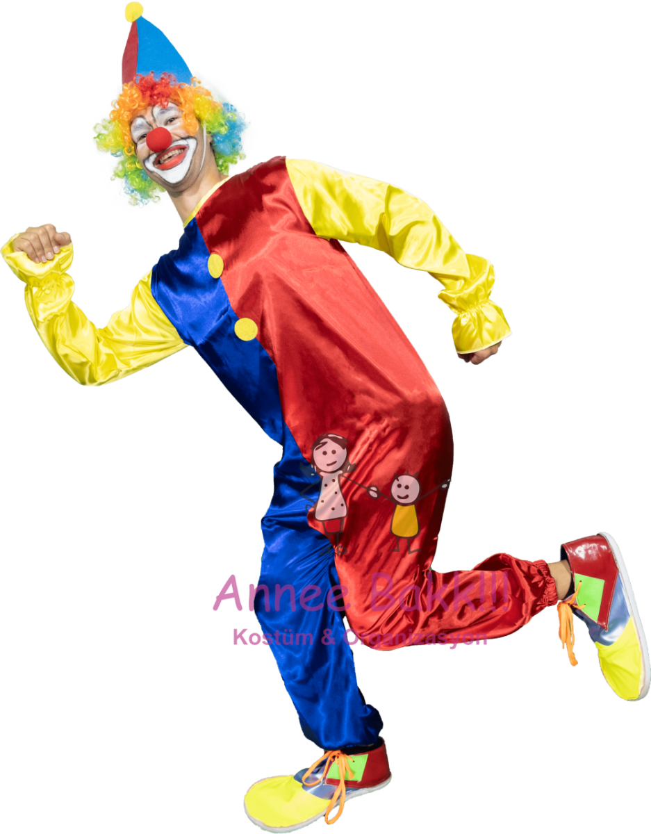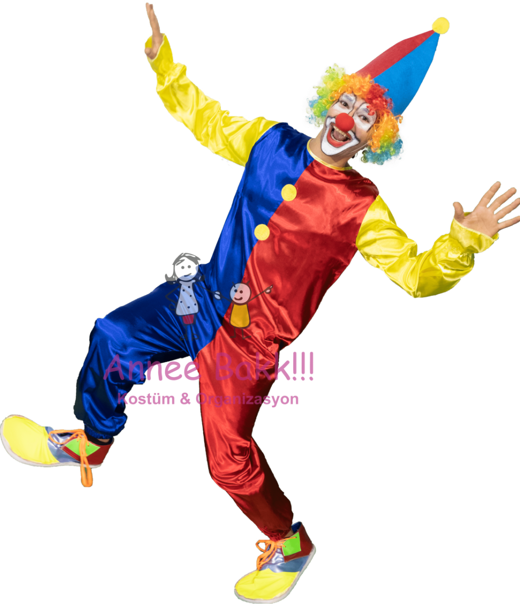 Kukuleta Şapkalı Palyaço Tulumu, Yetişkin Palyaço Kostümü