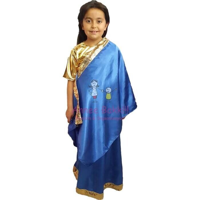 Mavi Renk Hintli Kız Kostümü, Hindistan Temalı Kız Çocuk Kostümü