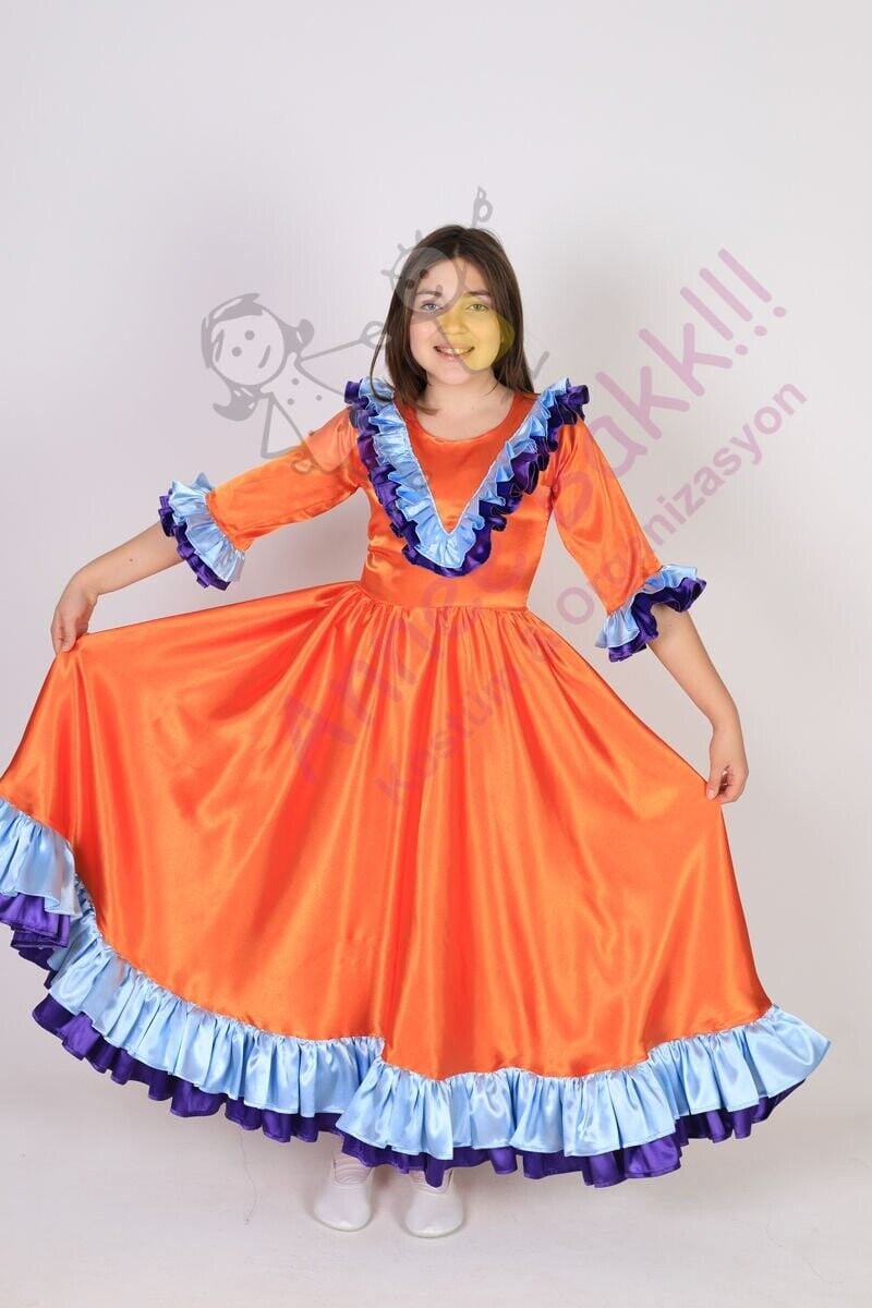 Fırfırlı Model, Saten Kumaş Meksikalı Kız Çocuk Kostümü