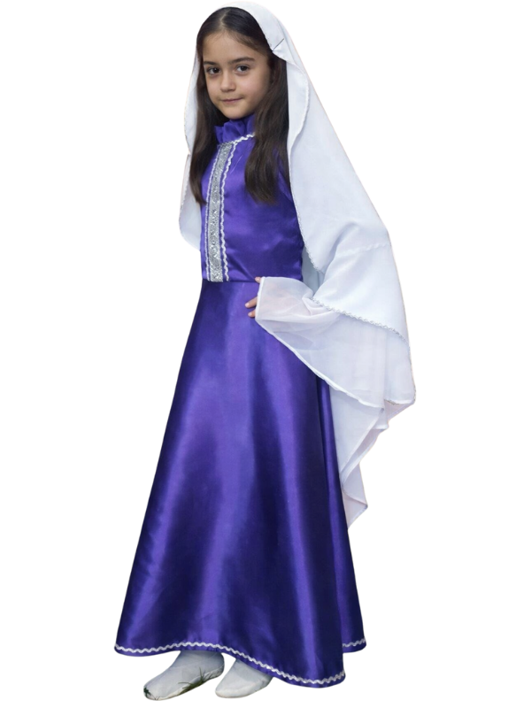 Kız çocukları için özel olarak tasarladığımız şifon ve saten kumaştan üretilmiş Kafkas Kız Kostümü, zarafet ve gösterişin mükemmel bir kombinasyonunu sunar. Mor rengiyle dikkat çeken bu kostüm, her detayında özenle işlenmiş ve çocukların hayal dünyasında unutulmaz bir iz bırakacak niteliktedir.