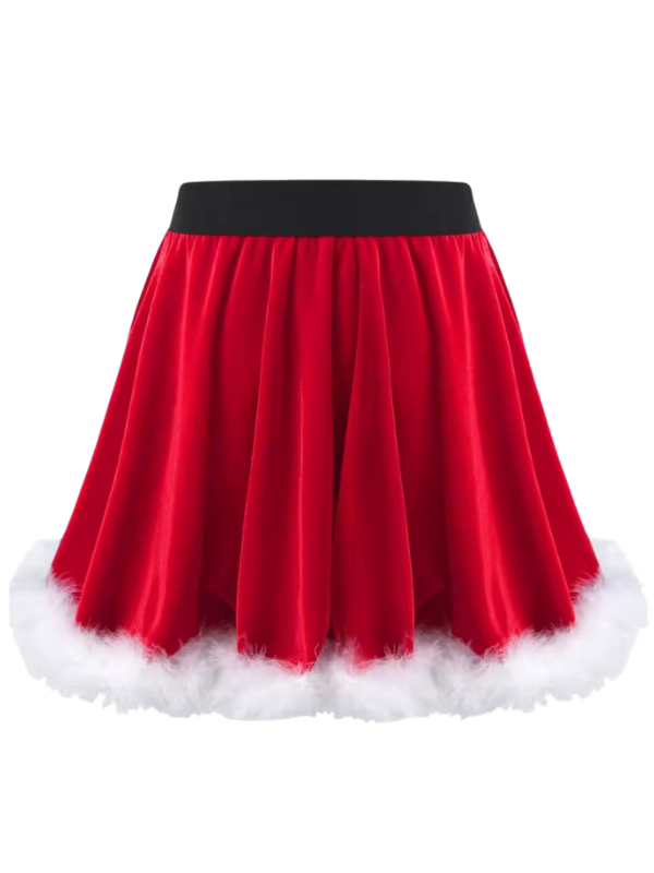 Paket içeriği tek parça beli lastikli etekten oluşmaktadır. Noel temalı tişört, pelerin veya aksesuarlarla kolayca kombinlenebilir ve yılbaşı etkinliklerinde tamamlayıcı bir görünüm sağlar.