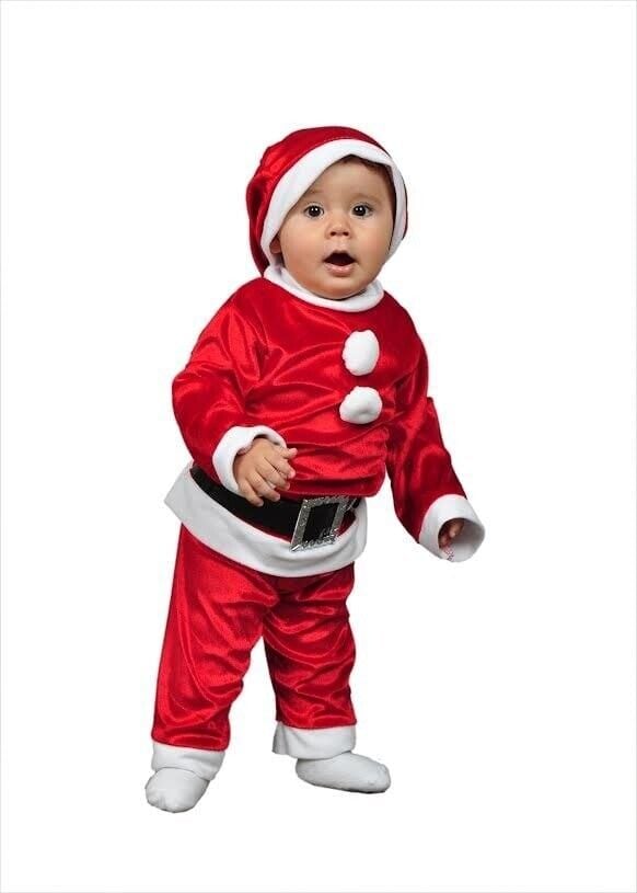 Noel Baba bebek kostümü, hem kız hem de erkek bebekler için unisex olarak hazırlanmıştır.