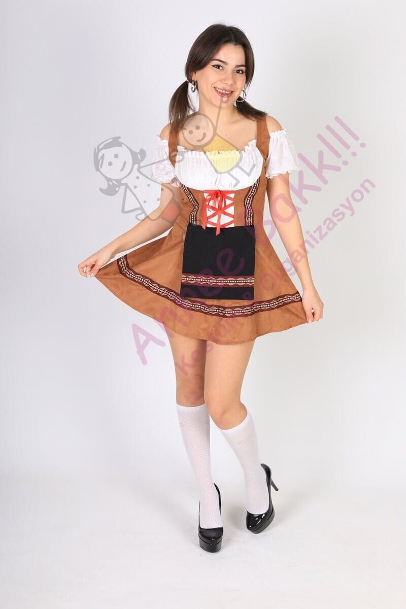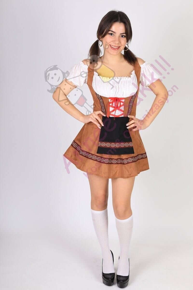 Özel kültür ve ülke kostümleri üretmeyen bir işletme olarak, kaliteli nubuk ve kadife kumaştan ürettiğimiz 'Kahverengi Oktoberfest Kostümü' ile Oktoberfest ruhunu yaşayın. Bu kostüm, yetişkin kadınlar için özel olarak tasarlanmış olup, S, M, L ve XL beden seçenekleriyle her bedene uyum sağlar.