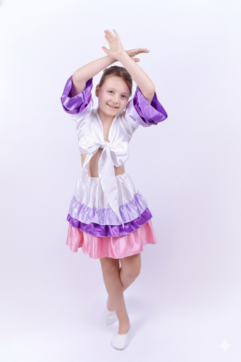 Ürün, saten kumaştan üretilmiştir. Satenin doğal parlaklığı kostüme sahnede ve fotoğraflarda estetik bir görünüm kazandırır. Akıcı yapısı sayesinde hareket kabiliyetini kısıtlamaz, çocukların gösteri ve oyun sırasında rahat etmesini sağlar. Hafif yapısı uzun süreli kullanımlarda terletmez, gün boyu konfor sunar.