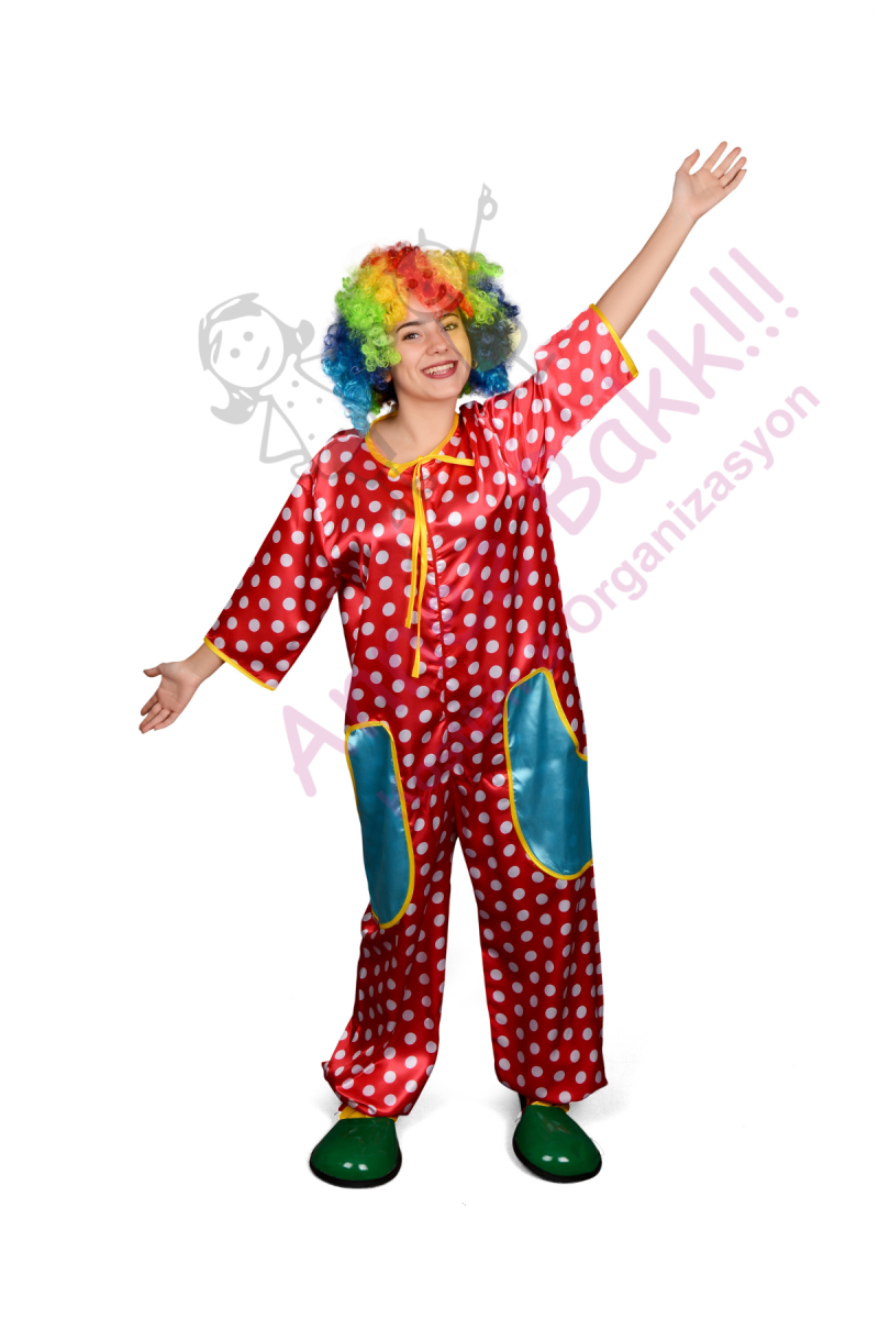 Puantiyeli deseniyle dikkat çeken bu kostüm, çok renkli ve canlı bir görünüme sahiptir. Eğlenceli ve neşeli atmosferlerde göz kamaştırıcı bir etki yaratır.
