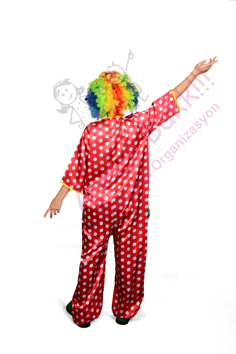 Yetişkinler İçin Puantiyeli Tulum Palyaço Kostümü