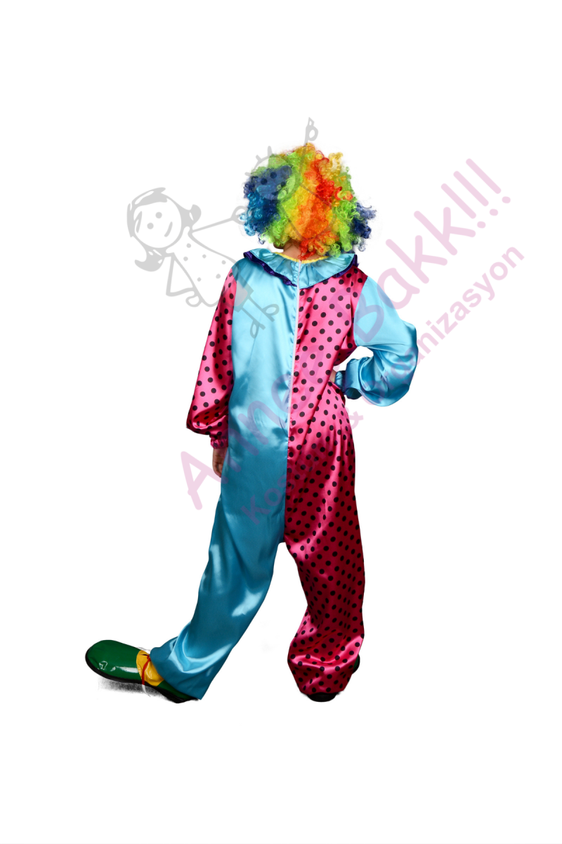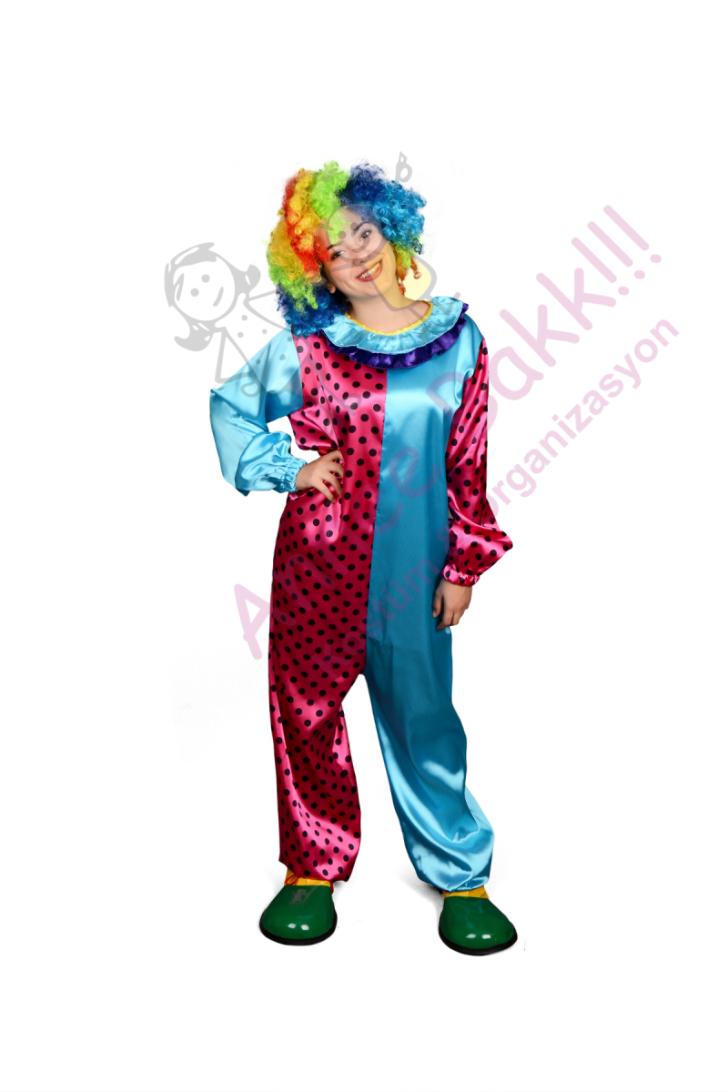 Yetişkin bay ve bayanlar için özel olarak tasarlanmış palyaço kostümümüz, hem kadınlar hem de erkekler tarafından kullanılabilir. Bu özel saten kumaştan üretilen palyaço kostümü, göz alıcı puantiyeli bir tasarıma sahiptir ve bordo-mavi renklerle dikkat çeker.