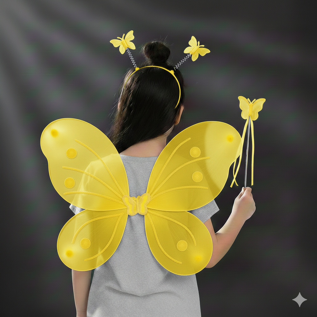 Eksiksiz Kelebek Kostüm Seti: Kanat, Asa ve Taç Bir Arada