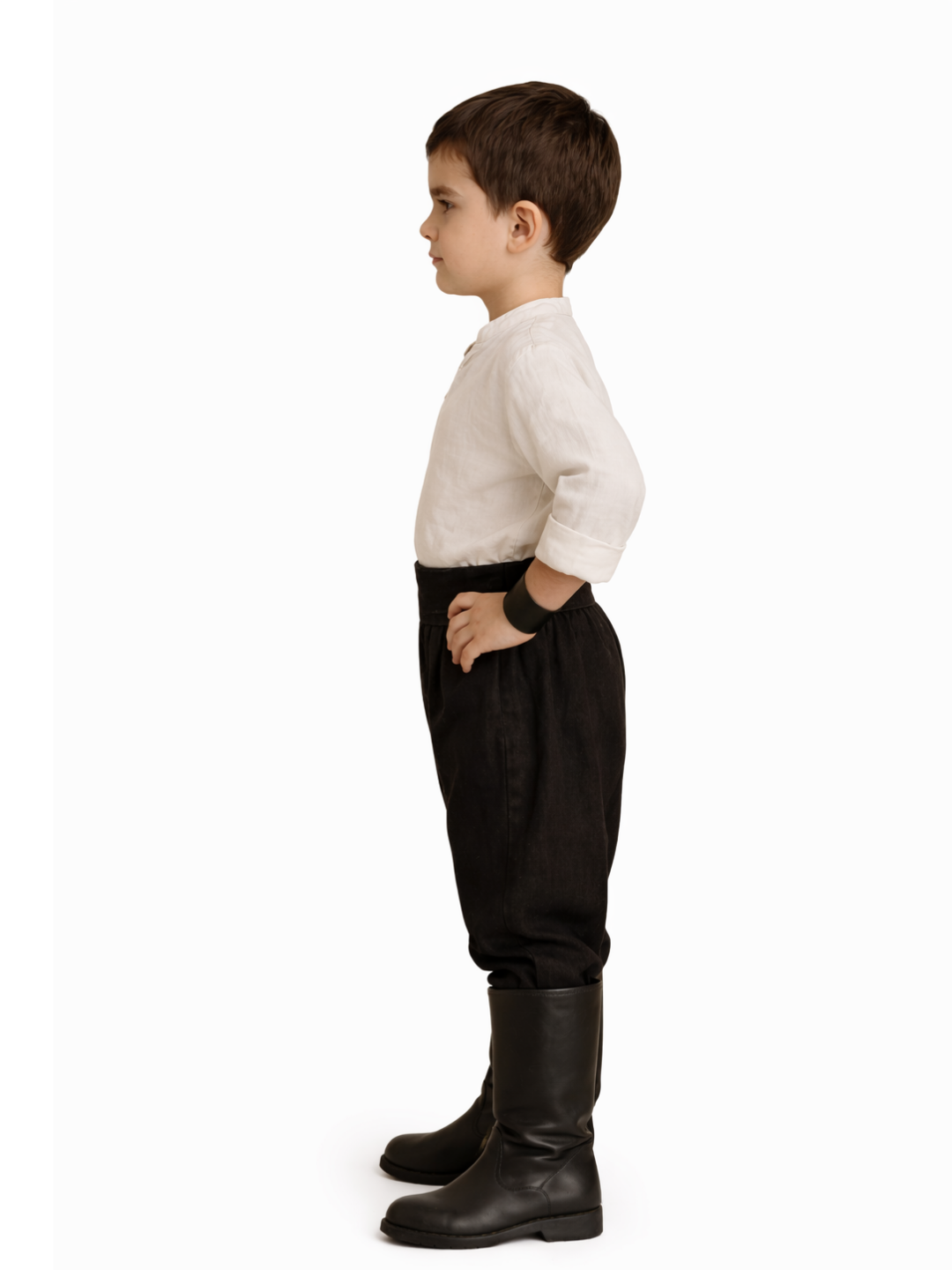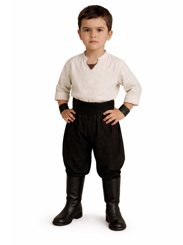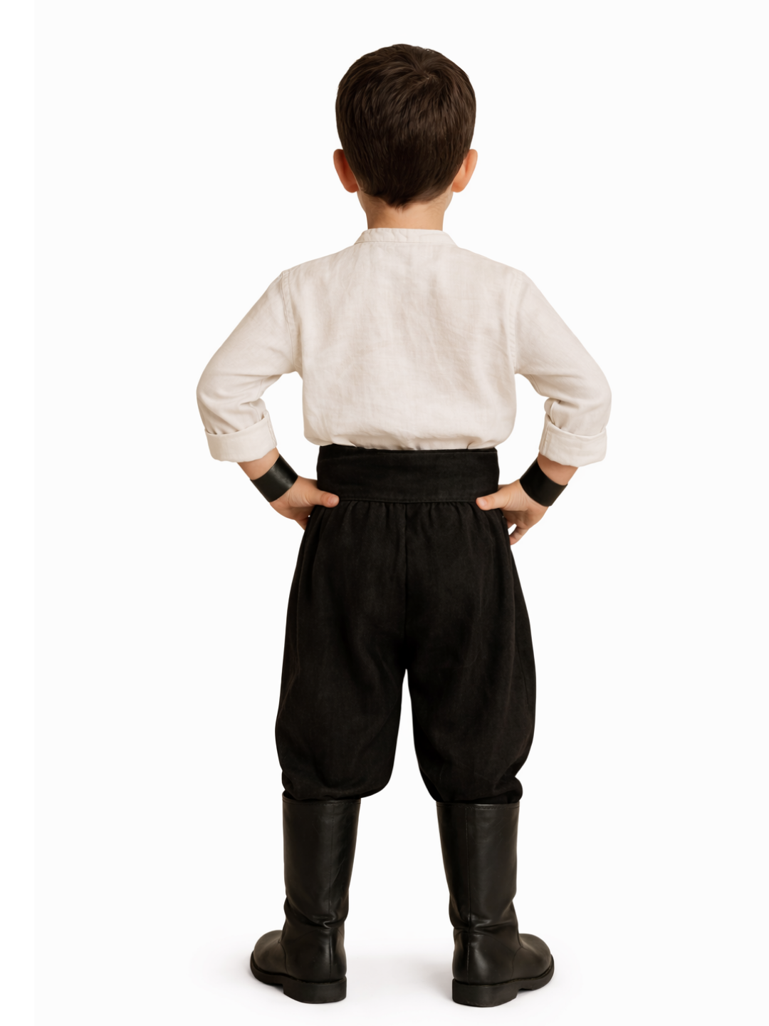 Seyit Onbaşı kostümü, dayanıklı alpaka kumaştan şalvar pantolon ve poplin kumaştan gömlek ile üretilmiştir. Nefes alabilen kumaş yapısı sayesinde çocuklar sahne performanslarında ve uzun süreli kullanımlarda rahat eder.