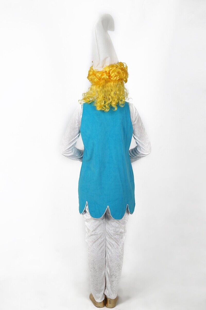 Bu kostüm, Şirine tulumu, elbise, şapka ve eldivenden oluşmaktadır. Çok parçalı tasarımı sayesinde tam bir Şirine görünümü elde edebilirsiniz. Şirine tulumu, rahat ve esnek yapısıyla kolay hareket imkanı sunar. Elbise, şirin ve zarif bir görünüm sağlarken, şapka ve eldivenler kostümünüzü tamamlar.