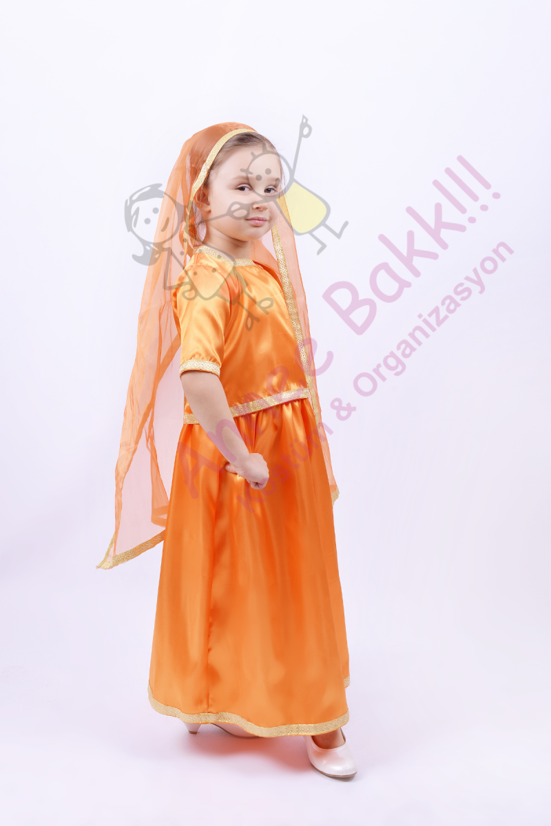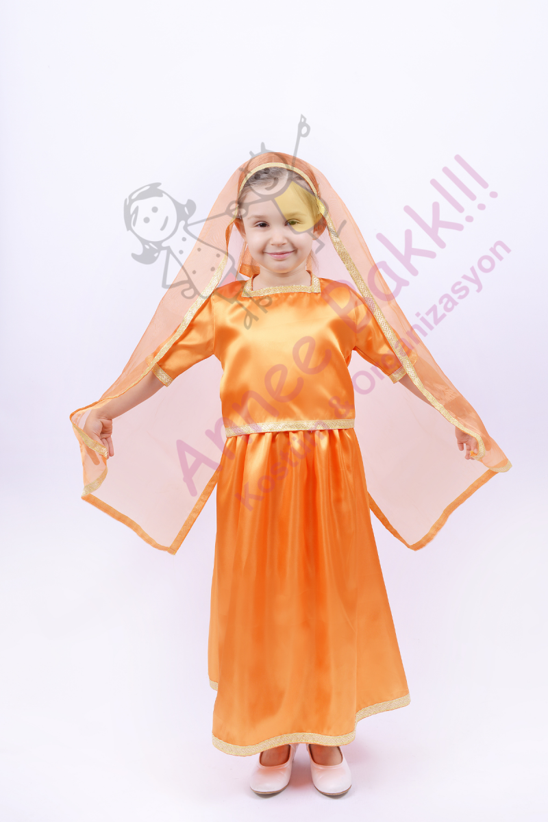 Turuncu Renk Hintli Kız Çocuk Kostümü, Hint Temalı Kız Çocuk Kostüm