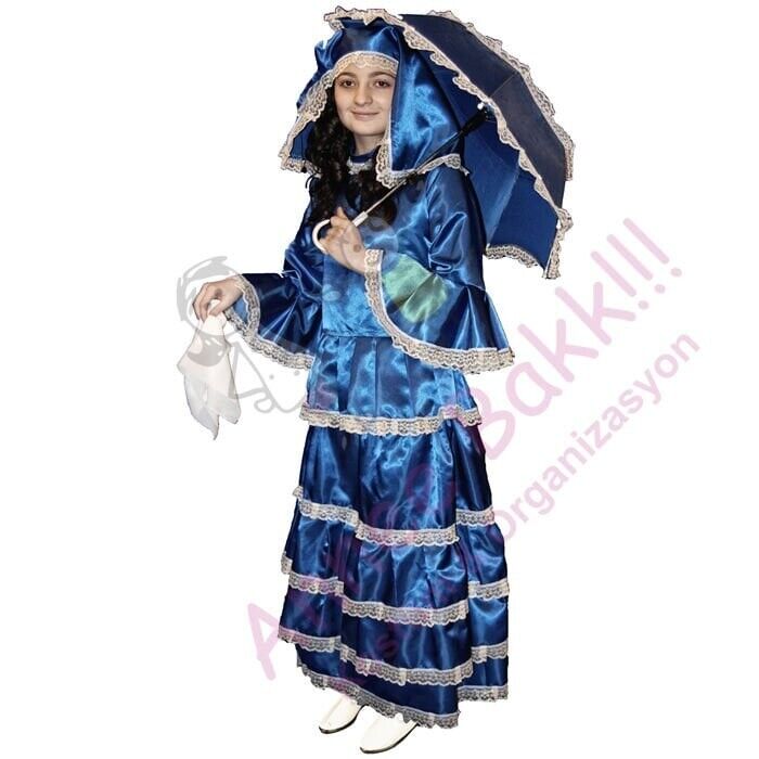 Üsküdar’ın nostaljik atmosferini yansıtan bu özel kostüm, saten kumaştan üretilmiş olup, fırfırlı etek, bluz, alınlık örtü ve şemsiye ile tamamlanmıştır. Lila, kırmızı, ve mavi renk seçenekleri ile çocukların beğenisine sunulan bu kostüm, 3-4 yaş aralığından 7-8 yaş aralığına kadar beden varyasyonları ile her çocuğa hitap ediyor.