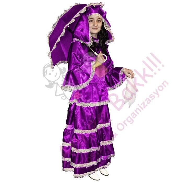 Üsküdar’ın nostaljik güzelliklerini çocuklar için özel olarak tasarlanmış bu kostümde bulabilirsiniz. Saten kumaştan üretilen ve fırfırlı etek, bluz, alınlık örtü ve şemsiye gibi detaylarla tamamlanan bu kostüm, lila, kırmızı, pembe, sarı ve yeşil renk seçenekleri ile farklı beden varyasyonlarında sunuluyor.