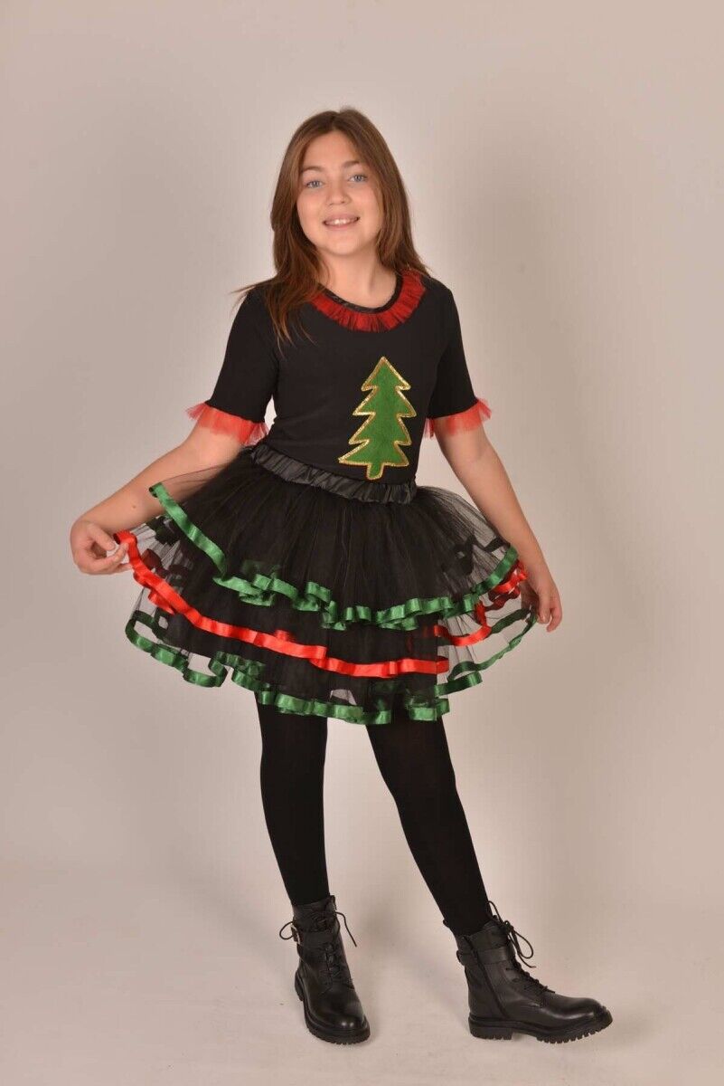 Işıltılı Yeni Yıl Çam Ağacı Kız Çocuk Kostümü