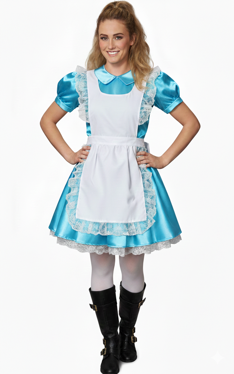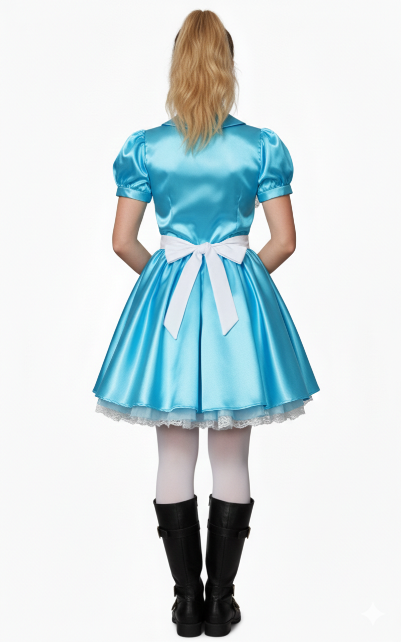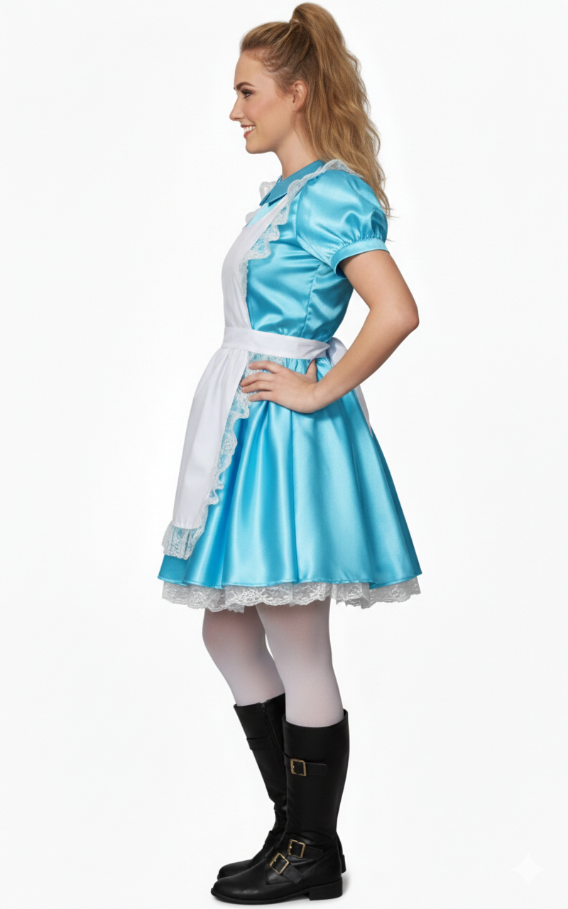 Alice Harikalar Diyarı'na yolculuk yapan genç kızın rüya gibi maceraları, çocukluğumuzun en sevilen masallarından biridir. Kostümümüz, bu efsanevi masalın hayat bulduğu özel günlerde size unutulmaz bir deneyim sunar. Alice elbisesi ve çift taraflı önlük, sizi masal kahramanı Alice'nin dünyasına götürür.